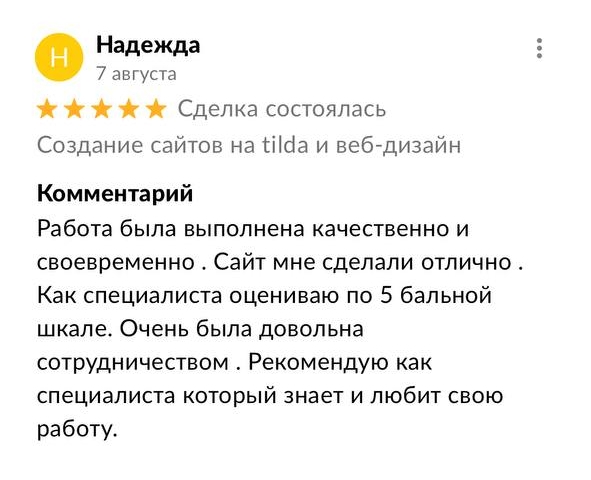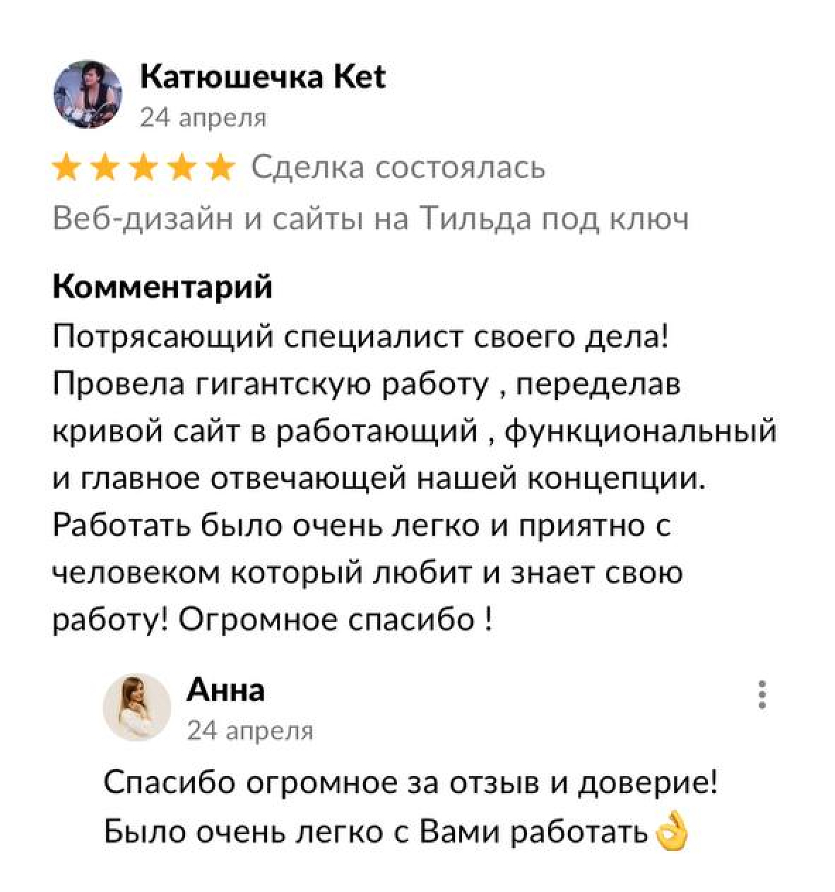 Кроме этого после каждого большого этапа предусмотрено 2 набора правок. Например я создала структуру сайта и отредактировала тексты, высылаю вам на проверку, вы присылаете сколько угодно замечаний, это и есть один набор правок. Как только вы утвердили прототип — мы двигаемся дальше. Тоже самое после дизайн-макета (если мы сначала рисуем дизайн в редакторе) и после верстки на Тильде. Главное чтобы правки были централированы, то есть вы оцениваете проект и сразу сообщаете обо всем что вам не нравится.